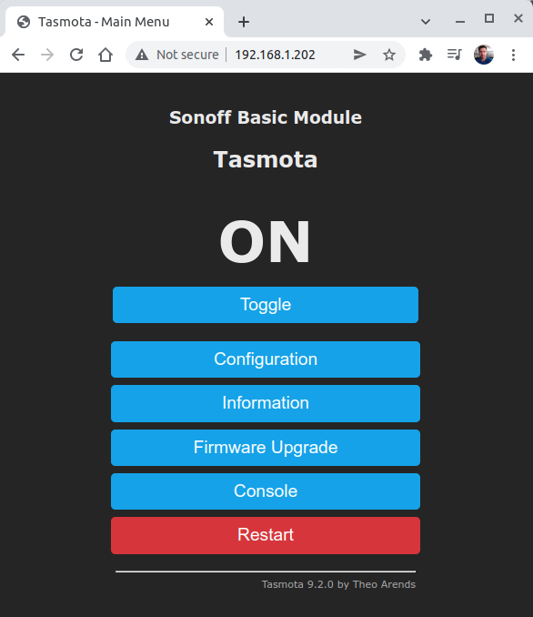 Your Neo with Tasmota is ready to use. You can open its webpage via its ip address and trigger the output ( ON / OFF ) or setup a timer to shutdown power at predefined time.