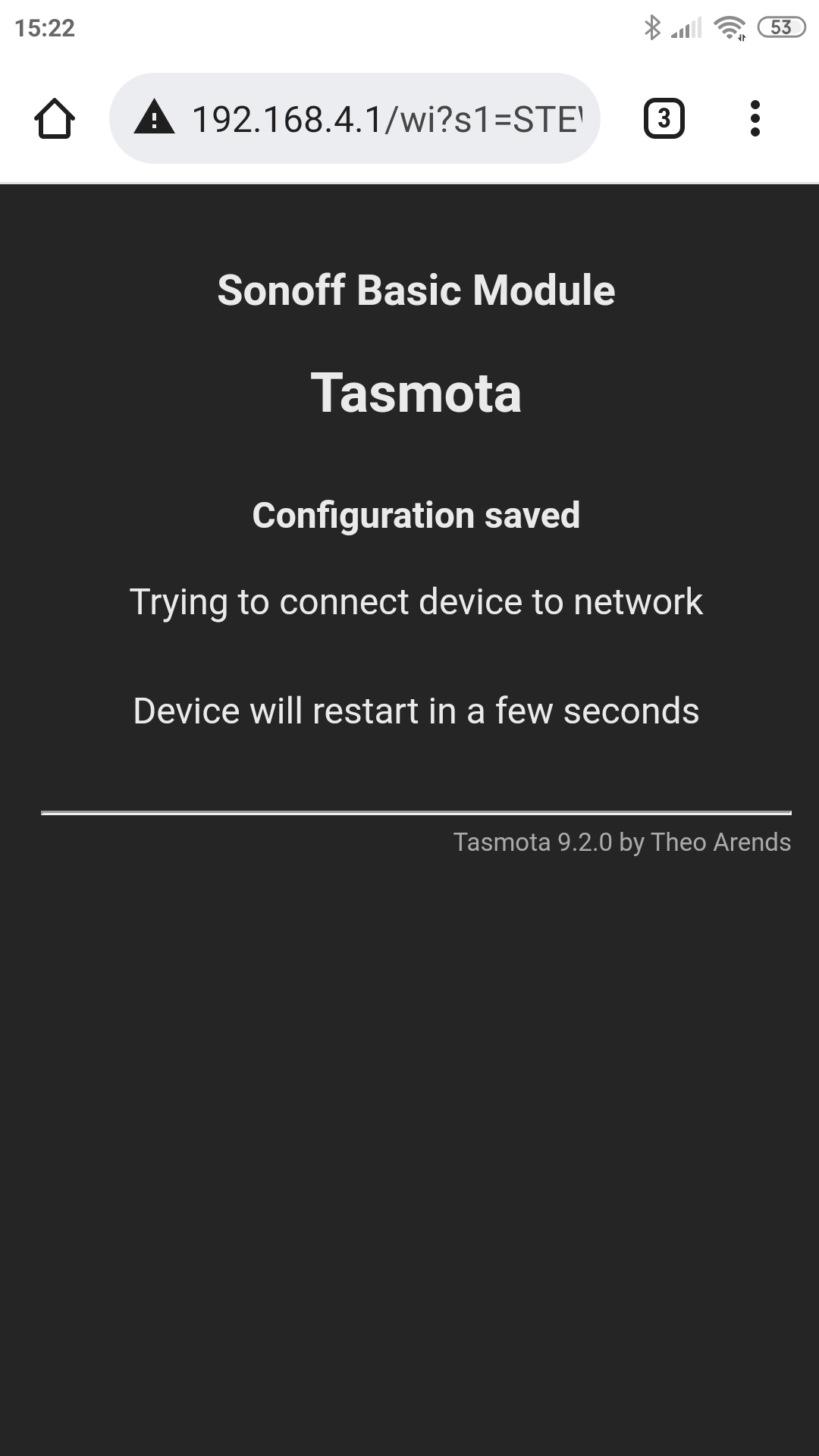Save. It will restart. Your phone will disconnect from it, and will automatically connect to your home network